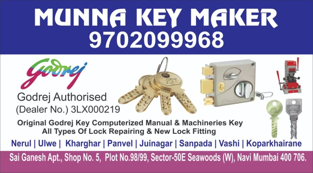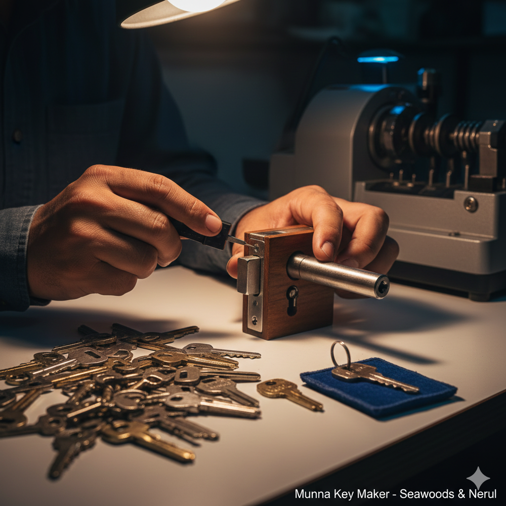 Munna Key Maker Seawoods & Nerul | Professional locksmith services including duplicate keys, car key programming, and emergency lockout assistance. Fast, reliable, and affordable service at your doorstep. Call us today for expert solutions in Nerul!